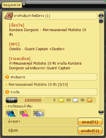 เมื่อสำเร็จเควส ภารกิจลับกำจัดปีศาจ (1) จะปรากฏ Quest : ภารกิจลับกำจัดปีศาจ (2) ที่ NPC : Guard Captain ในแผนที่ Odellia